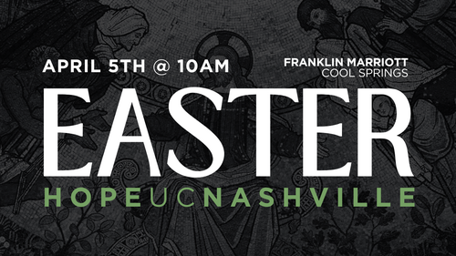 Join us at the Franklin Marriott Cool Springs for HopeUC Nashville's Easter Service. We are so looking forward to gathering together as one big family to celebrate the finished work of Jesus Christ on the cross.